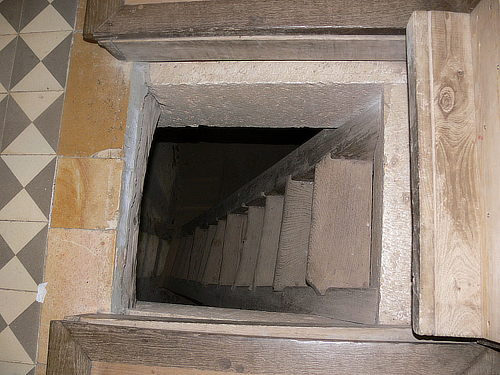 There’s one in the chapel of Wildenstein Castle, near Leibertingen in the Black Forest. Those paying for a guided tour hear stories of the sadistic knight Heinrich von Wildenstein and his squire gruesomely knotting the legs of seditious peasants. But this short stairway down behind the altar probably only leads to a lower storey, that’s all. Those knobbled peasants probably couldn’t have managed any longer distance. But who needs a secret passage anyway if you can tie the peasants’ legs in knots? (‘Auf Burg Wildensteing’, Märchenfreude).
