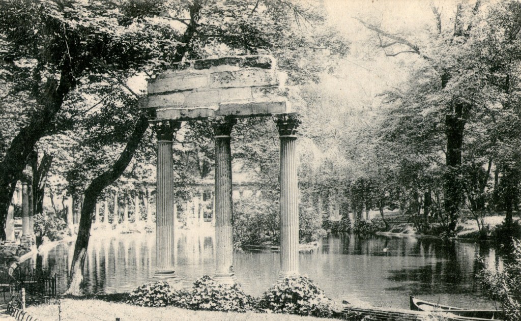 So he leaves the young lady reassured, and strolls over into the Parc Monceau (his brother not having returned from the Bourse), and communes with himself in the exquisite little pleasure ground, looking at the beautiful naumachie and rock grotto, and would reflectively toss stones into the lake, did not a gend’arme restrain him.