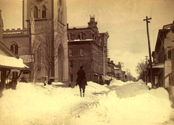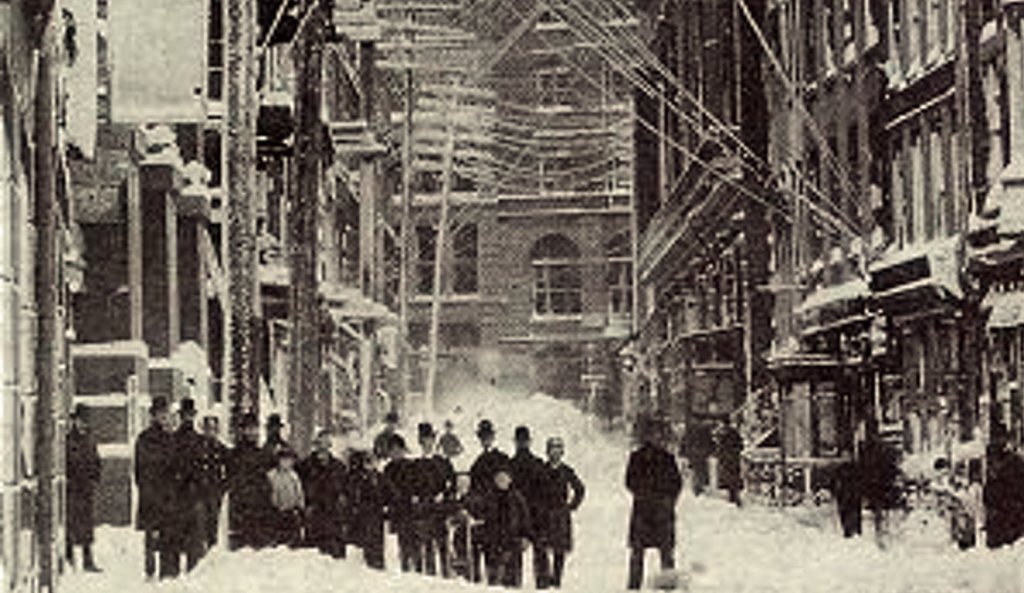 For the first time the metropolis experienced the effects of an oscillation in the polar vortex, which sent a blast of cold air across frozen Canada to meet with a mass of warm air travelling up from the Gulf of Mexico. The previous day had been a moderate 50°F (10°C) with rain in keeping with the close approach of Spring, thus the inhabitants of the city were totally unprepared for what confronted them on the twelfth. Torrential rain had turned to heavy snow, the temperature plunged below zero, snowdrifts reached the second storey of buildings, an estimated 500,000 pounds of horse manure and 60,000 gallons of horse urine froze and along with broken glass and other trash were whipped across the city by 100 mph winds (Mikolay).