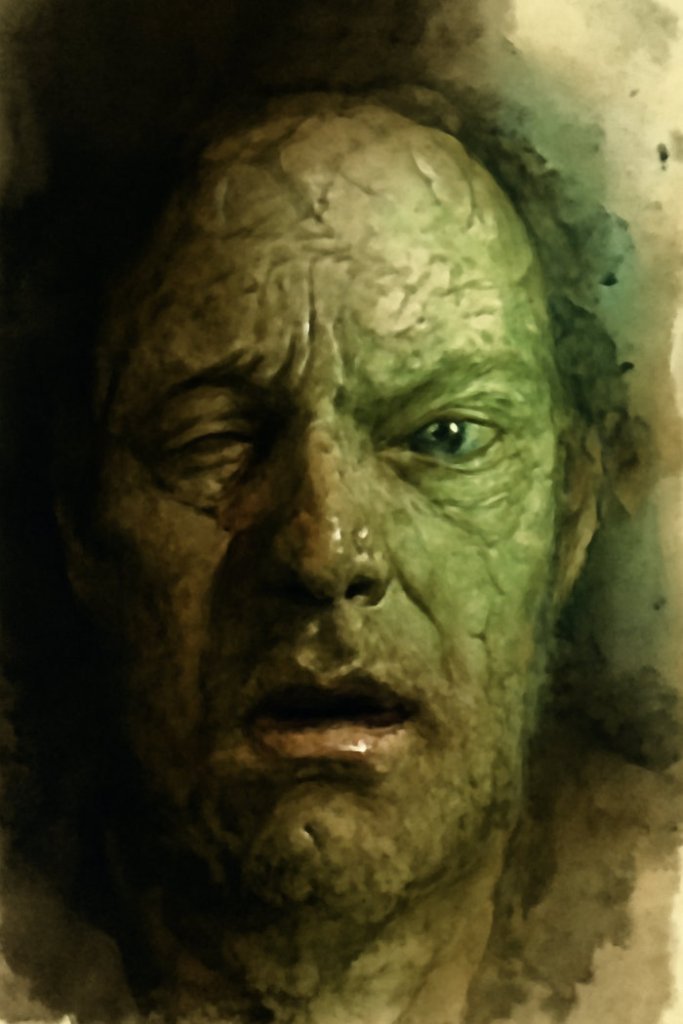 After the fun, Jenkins the barman is left to sweep the refuse into piles on the floor. He leaves the doors open for the last curls of tobacco stench to drift out with the nocturnal breeze. The place is otherwise empty except for Burns – or rather, what’s left of him. The man-shape slumps in the chair, but the thing inside is pared back to its oldest layer, the cold-blooded remnant that survives when all else is stripped away. His gaze is hooded, face sliding off the skull, mouth agape and drooling. A slow flick of the tongue, lizard-like, tastes the air.