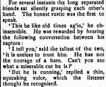 A fierce oath was the response; the pistol was raised, but not fired. “Quick as thought Ernest had covered the mans heart, and when he saw that quarter was not to be thought of he pulled the trigger, and ruffian Number Two fell from his saddle, his weapon being discharged as he went down.