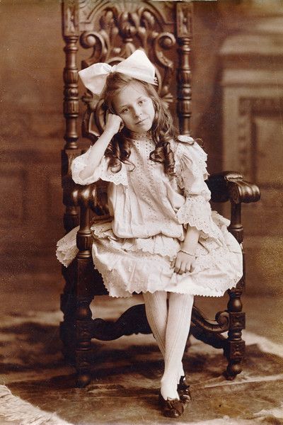 “How could I go out in these clothes? He took all the rest away! Look at me!” Then she suddenly cries, “No! For heaven’s sake don’t look!” for Harry is obeying her, and turning his eyes upon a babyish but alluring picture. Miss Severn is dressed as a Parisian child of eleven, with very short skirts, with very pink silk stockings and petite slippers, and baby waist with blue knots of ribbon upon her gleaming shoulders and round white arms, and golden hair hanging in one long juvenile pig tail.